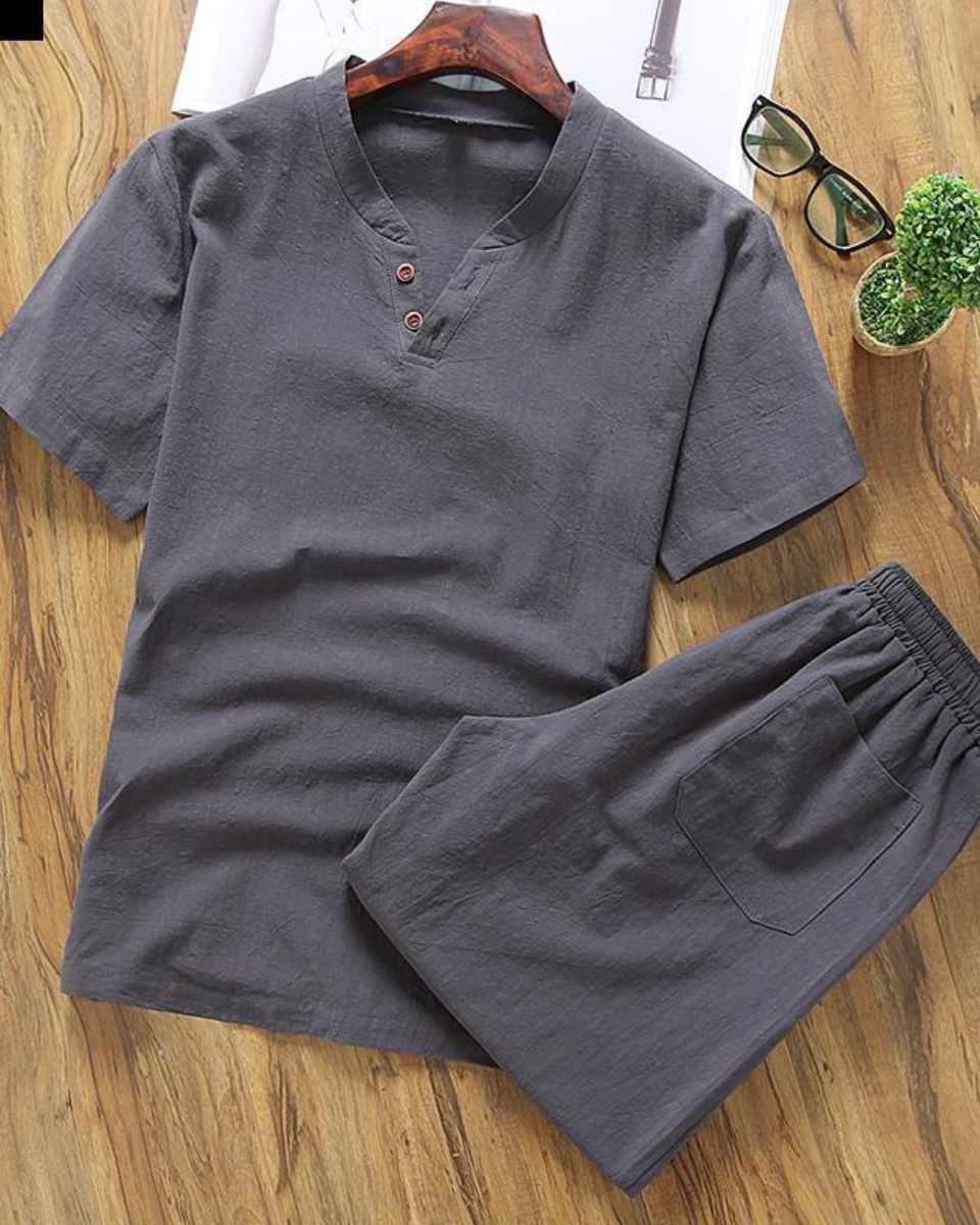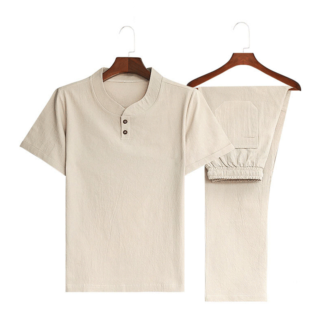 ✨🤩【Top + Pantaloni】 Costum de agrement pentru bărbați, lejer și respirabil, din bumbac și in de înaltă calitate